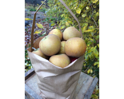 The skin of this well-known heirloom is almost completely covered with brown russet. Dense, crunchy flesh, sweet and a bit tangy. Great for fresh eating.