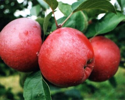 Spartan Apples are an early cross of Macintosh and Orange Pippin and have the distinct crispness of the Macintosh and the sweetness and juiciness of the Pippins. The skin color is red to deep crimson, and they are smaller in size.