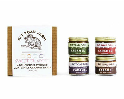 This quartet of caramels is a great way to sample a variety of flavors made from Fat Toad's caramel sauce. This kit includes four 2 oz. jars of delicious goat's milk caramel and makes a great gift!
