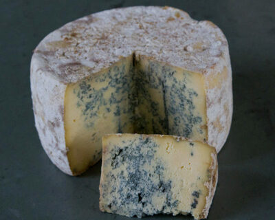 Bonnie Blue is a distinct blue cheese with a sharp tangy flavor and a dry crumbly texture.