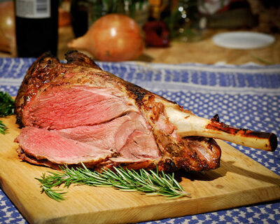 This bone-in lamb leg is a fit for a truly special feast or grill day.