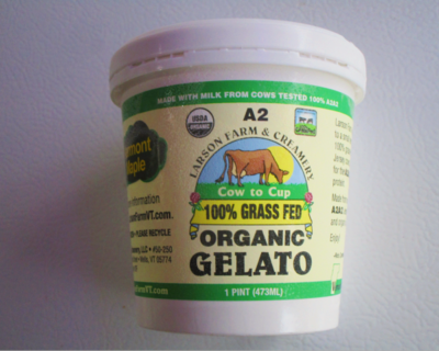 Larson's gelato (Italian ice cream) is made from their own organic 100% grass fed A2A2 Jersey cow milk, and they use only certified organic ingredients.