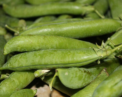 Peas like these will only be available for a short time because the plants start to fade in the heat. The shell is not edible, but the peas inside are deliciously firm, round and sweet.