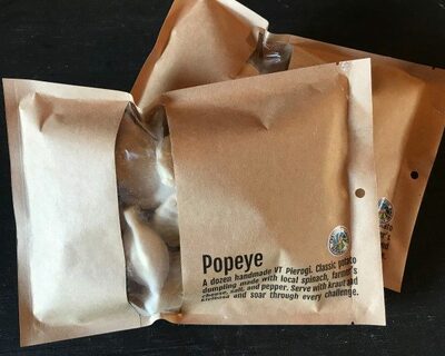 A dozen handmade VT Pierogi. Classic potato dumpling made with local spinach, farmers cheese, salt and pepper.