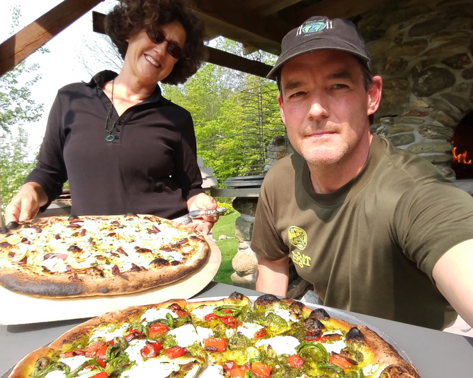 Gretchen started Bon Temps Gourmet in 1989 as a catering business in the wilds of Worcester, and quickly put a street cart on State Street in Montpelier as a way to get the word out about her new business. Greg joined the business in ’92 as the grill guy, then went to NECI and worked at A Single Pebble while Gretchen worked for Senator Leahy, and together Gretchen and Greg continued to feed Central Vermont through various venues over the years (street cart, catering, Airstream mobile kitchen, weddings, private dinners, multi-day camps etc.). In 2015 they built a river stone pizza oven on their property in Worcester, and West Worcester Woodfired was born. They have been making smoked nuts for catering events for many years, always thinking that it would make a good product to package for the retail market, but too busy with catering to actually get around to packaging and marketing the smoked nuts. Until the pandemic hit that is, and their catering business was effectively shut down – so they pivoted to West Worcester Woodfired Smoked Nuts! We source out the highest quality whole raw nuts, cold-smoke them for 12 hours, then roast them and toss in the seasonings – smoked chile oil that we make in-house from chiles de arbol, garlic and olive oil; Vermont honey from our friends at Bee Haven Honey Farm down the road in Putnamville; and kosher salt and Spanish paprika. We create W3 Smoked Nuts in our home-based commercial kitchen in Worcester, Vermont, operating as a “mom and pop” business without any employees (except for friends and neighbors who help out with pizza nights).